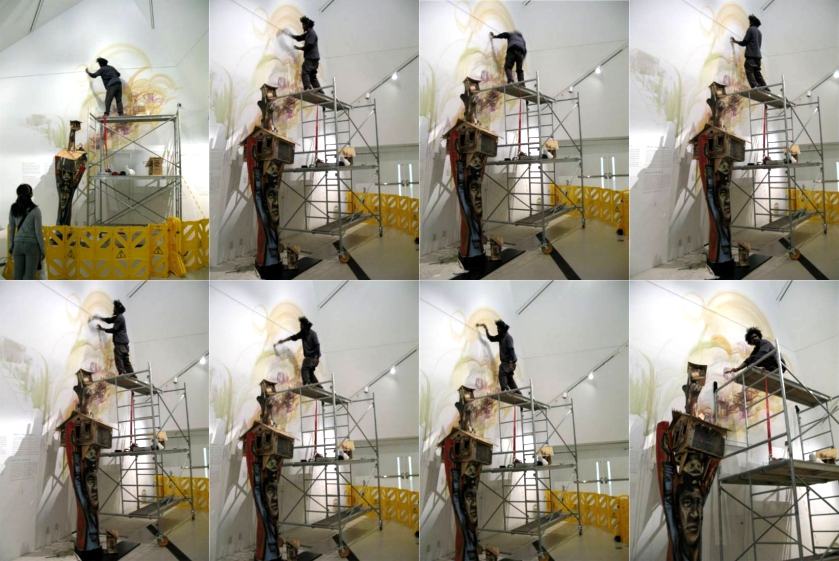 Elicser Elliot working on the ‘Hug Me Tree’ Installation, ROM 2009